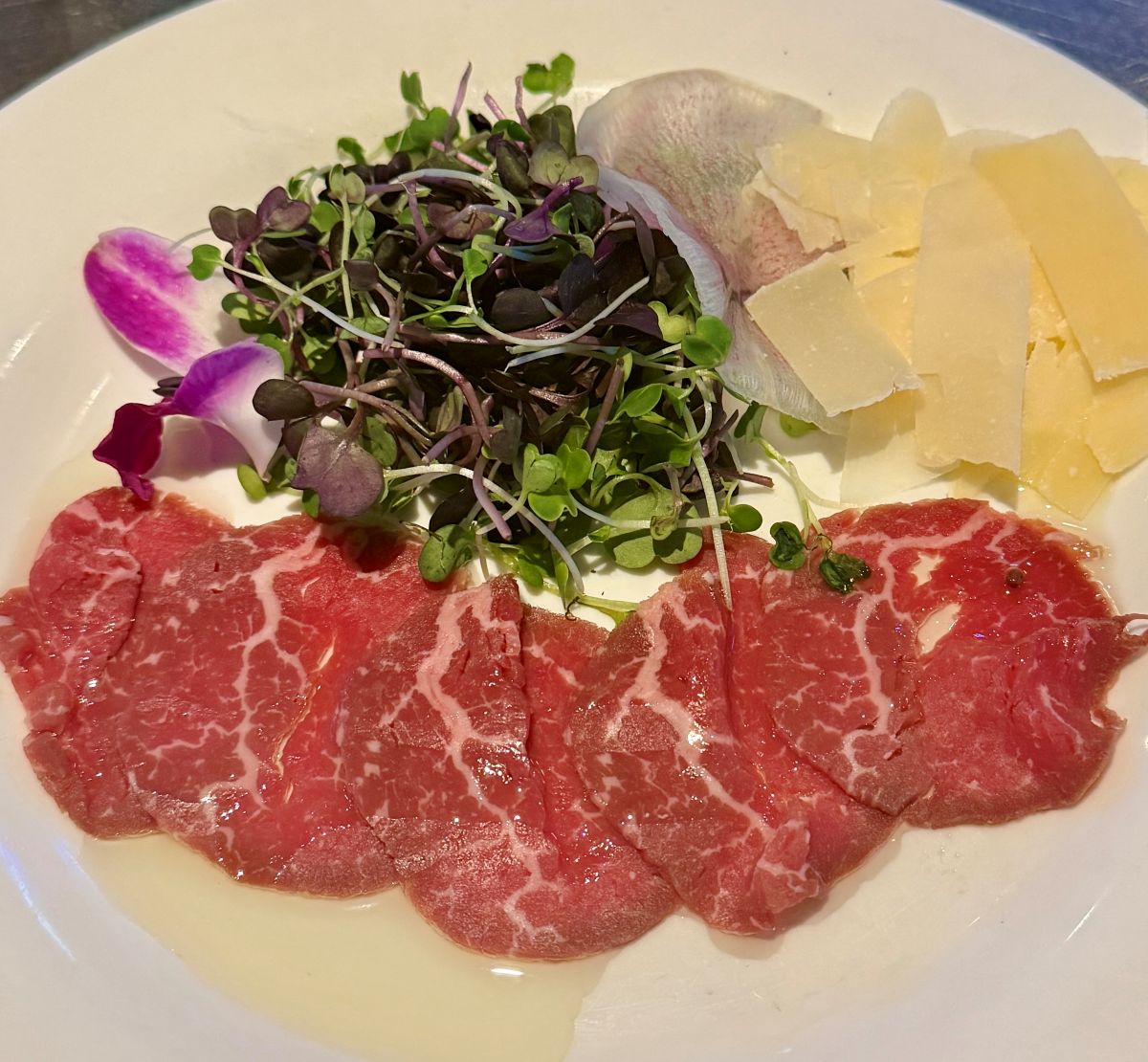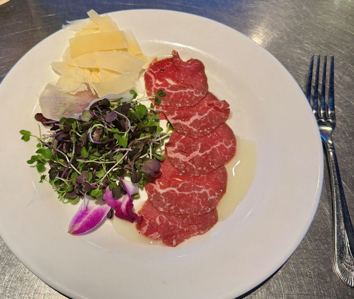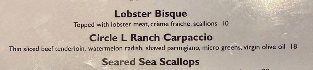 Reasoning: Unfortunately this dish just has too many things wrong with it. Capers bring salt, missing. Arugula brings pepper, missing. Lemon allows you to cut through oil and bring a bright flavor where it’s missing. Onions add complexity and variety if added sparingly. And somehow, even though you can see the meat itself looks like an excellent cut, even after adding salt and pepper it was essentially flavorless aside from the taste of the oil treatment. This restaurant does plenty of things well, and with some adjustments this can be a good dish. But unless changes are made I would not get it again nor recommend it.