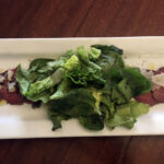 After a wonderful day at sea we sat down to the ship’s Italian restaurant for Valentine’s Day dinner. This was the first carpaccio appetizer I saw when I checked the restaurant menus after boarding, but it was the third I tasted on the trip.