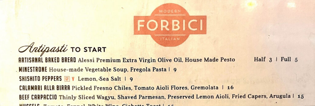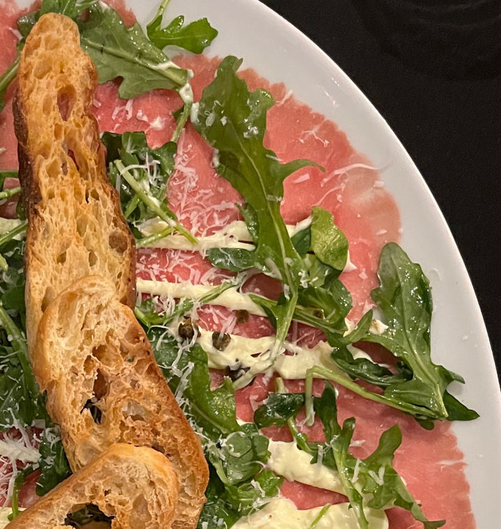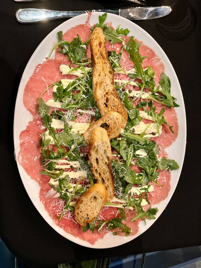 One does not place grated parmesan on carpaccio. Only slices will do – with a cheese plane. At least it seemed to taste like the right kind of cheese, there was so little of it it’s hard to say for sure.